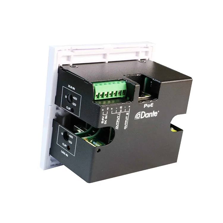 Panel rozhraní 2CH Dante Interface 2 Mic/Line X 2 Outputs je ideální pro profesionální zvukové aplikace, jako jsou konferenční místnosti, živé zvukové nastavení, vysílací studia a nainstalované AV systémy, kde je v kompaktním faktoru spolehlivé a analogové a-dante přeměnu. Jeho design na stěně umožňuje čistou a efektivní integraci do různých prostředí při zachování vysoce kvalitního zvukového výkonu.